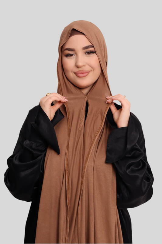 Hijab Express Perfection – Bonnet à Nouer Intérieur Satin + Voile Jersey Coton Modal avec Aimants – Qualité Supérieure XL – Mocha
