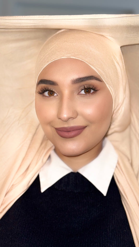 Hijab Express Confort Ultime – Sous-Hijab intégral + Voile Jersey Coton Modal avec Aimants – Qualité Supérieure XL – Couleur Sable