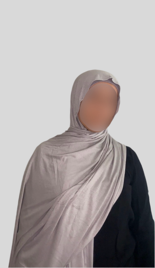 Hijab Express Perfection – Bonnet à Nouer Intérieur Satin + Voile Jersey Coton Modal avec Aimants – Qualité Supérieure XL – Gris Clair