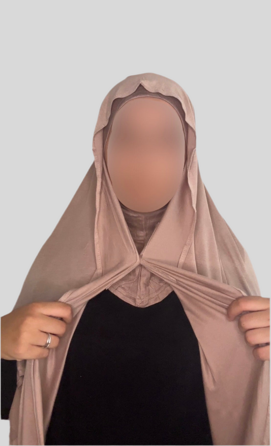 Hijab Express Confort Ultime – Sous-Hijab intégral + Voile Jersey Coton Modal avec Aimants – Qualité Supérieure XL – Mocha