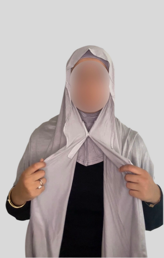 Hijab Express Confort Ultime – Sous-Hijab intégral + Voile Jersey Coton Modal avec Aimants – Qualité Supérieure XL – Gris Clair