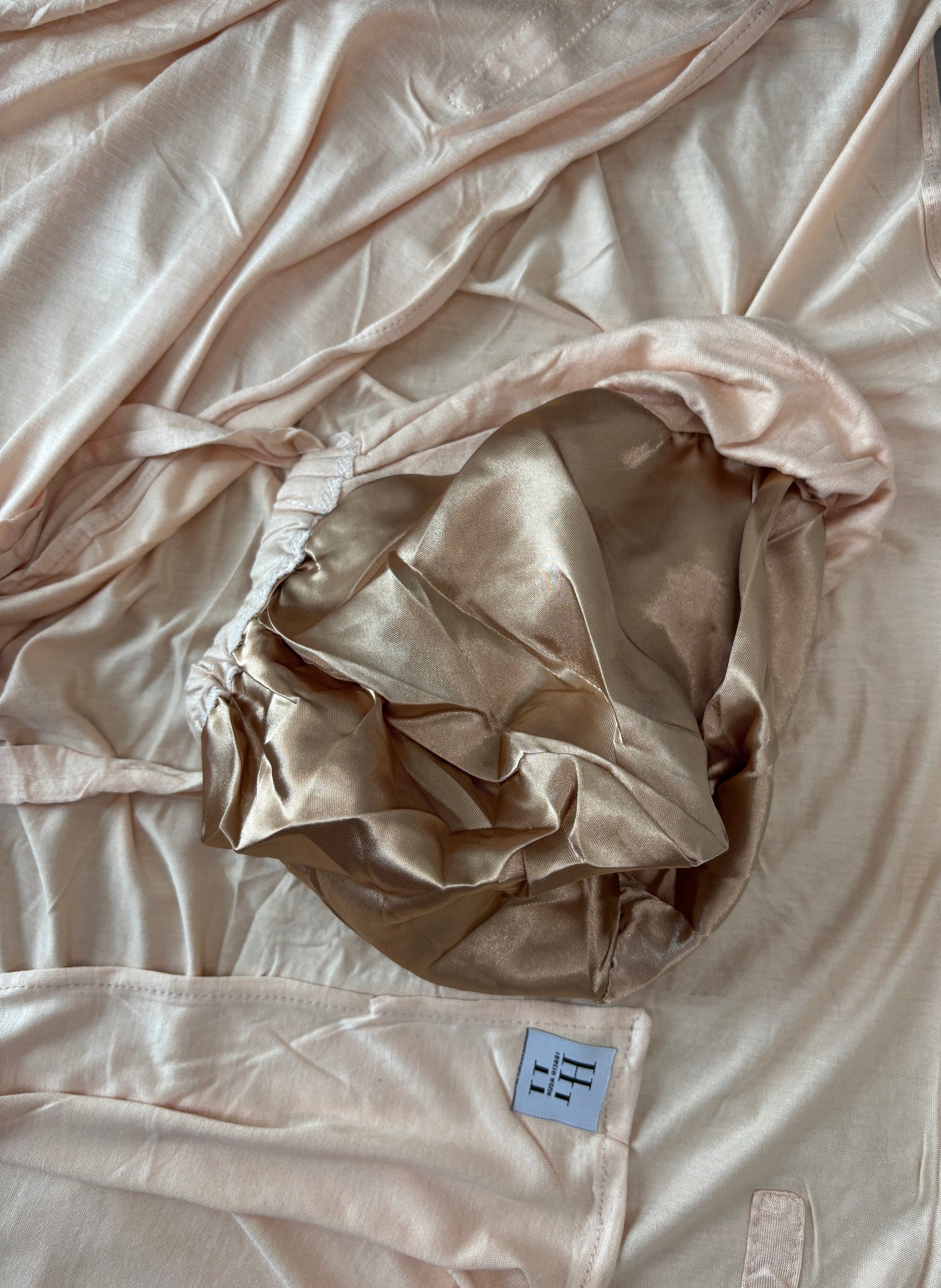 Hijab Express Perfection – Bonnet à Nouer Intérieur Satin + Voile Jersey Coton Modal avec Aimants – Qualité Supérieure XL – Beige Clair